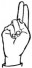 На ћирилици написано МИЉАНА РУЧНОВ састоји се из 12 слова [?]. Исписано ћириличном једноручном азбуком за глувонеме: